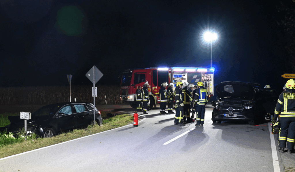 Ein schwerer Verkehrsunfall mit vermutlich eingeklemmten Personen wurde am Freitagabend auf der Kreisstraße LA48 zwischen Wurmsham und Schleichwies bei Stockham alarmiert. Die Fahrerin eines Mercedes befuhr die Kreisstraße LA50 von Ranoldsberg (Lkr. Mühldorf a. Inn) in Richtung Wurmsham. An der dortigen Kreuzung wollte die Dame abbiegen und missachte die Vorfahrt eines weiteren Mercedes, welcher von Schleichwies in Richtung Wurmsham unterwegs war. Trotz Ausweichmanöver prallten beide Fahrzeuge im Kreuzungsbereich ineinander, das Fahrzeug der Unfallverursacherin wurde in ein angrenzendes Feld geschleudert. Da zunächst vom schlimmsten ausgegangen werden musste, wurden die Feuerwehren aus Pauluszell, Wurmsham und Velden/Vils an die Einsatzstelle entsandt. Ebenso der Helfer vor Ort aus Velden/Vils, ein Rettungswagen sowie Notarzt und die Polizei. Nach ambulanter Versorgung vor Ort konnten die Beteiligten jedoch an der Unfallstelle verbleiben bzw. gaben sich selbstständig in ärztliche Behandlung. Die Feuerwehren leuchteten die Unfallstelle aus, leiteten den Verkehr um und banden auslaufende Betriebsstoffe. Nach rund zweieinhalb Stunden konnte die Fahrbahn wieder freigegeben werden. Eine Streife der Polizeiinspektion Vilsbiburg nahm den Verkehrsunfall auf. Beide Fahrzeuge erlitten wirtschaftlichen Totalschaden und mussten abgeschleppt werden.